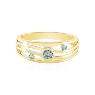 Schicker 0,153ct Blauer Diamant Goldplattierter Silberring